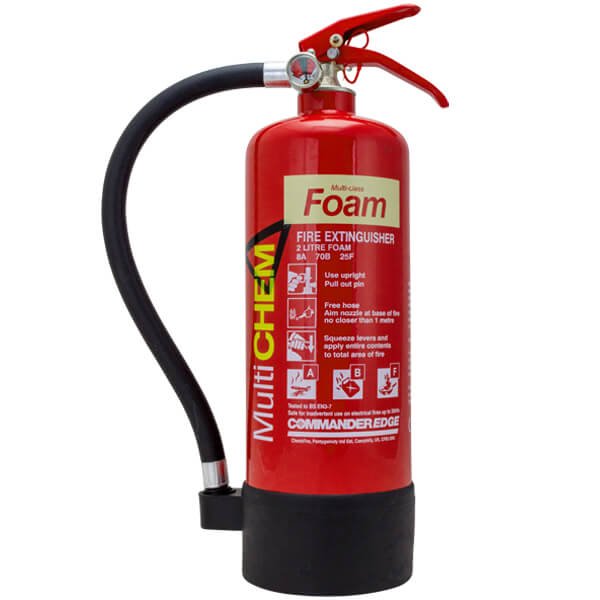 Perfect for mobile catering businesses and small kitchens, the 2 Litre MultiCHEM Foam Extinguisher is compact, lightweight and a great alternative to the wet chemical for commercial kitchens. Safe to use on fires involving deep fat fryers, it will also safely tackle other types of fire too. Kitemarked to BS EN3, MED ‘Ships Wheel’ Approved, and TUV Certified and only 390mm (15 inches) tall