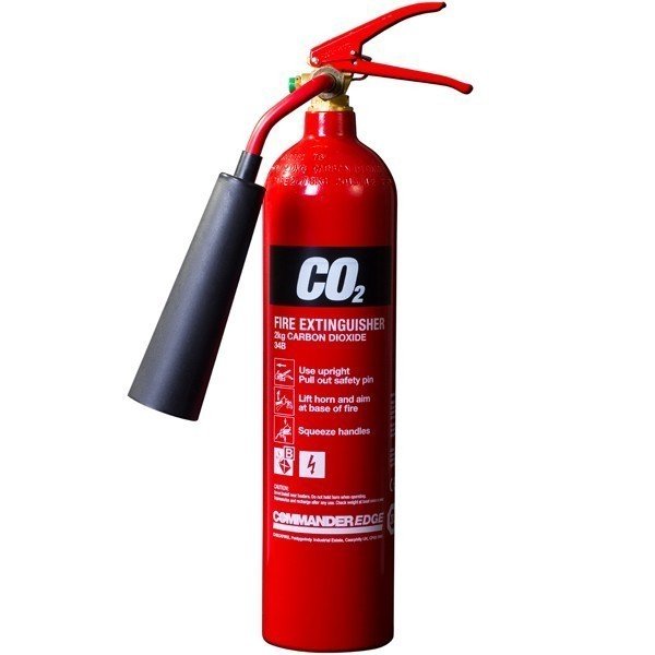 Best combined with a water, water additive or foam spray, a 2kg carbon dioxide fire extinguisher can be used where electrical items are on fire but should not be used on Class A (paper, wood, cloth, etc) fires. They require factory refilling and testing or service-exchange (see NOTE)