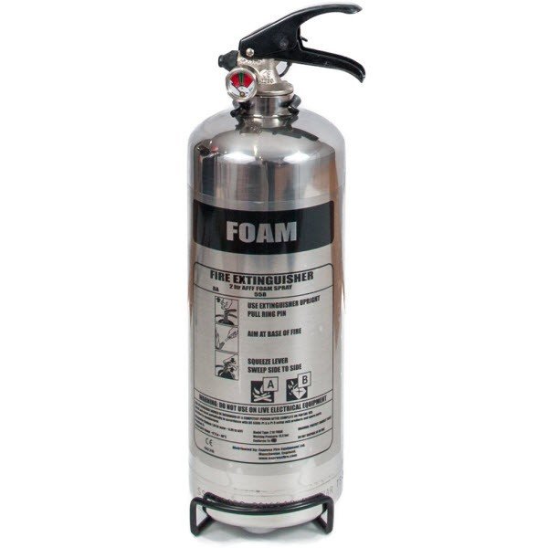 The 2 litre foam chrome extinguishers are mainly for vehicles, the 2 litre foam fire extinguishers (aka AFFF foam) are commonly used in motor sport or with classic cars. Their original purpose was to replace the halon (BCF) extinguishers banned under the Montreal Protocol Agreement